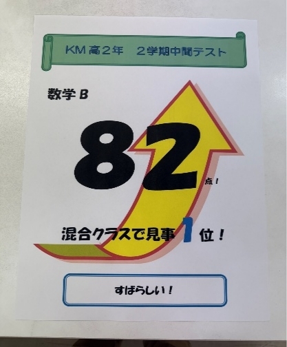 KM高校2年のSさん。担当して初めての定期試験で、早速、数学Bでクラス1位の成績をとってきてくれました。