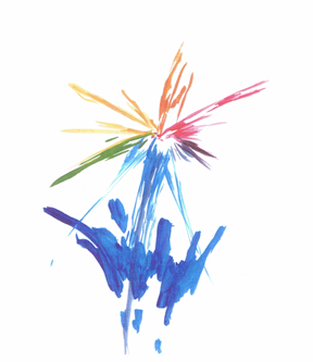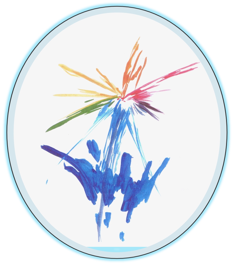 下の 青い部分は成央学院を、そこから出ている七色の光は生徒たちの無限の可能性を表現しています。